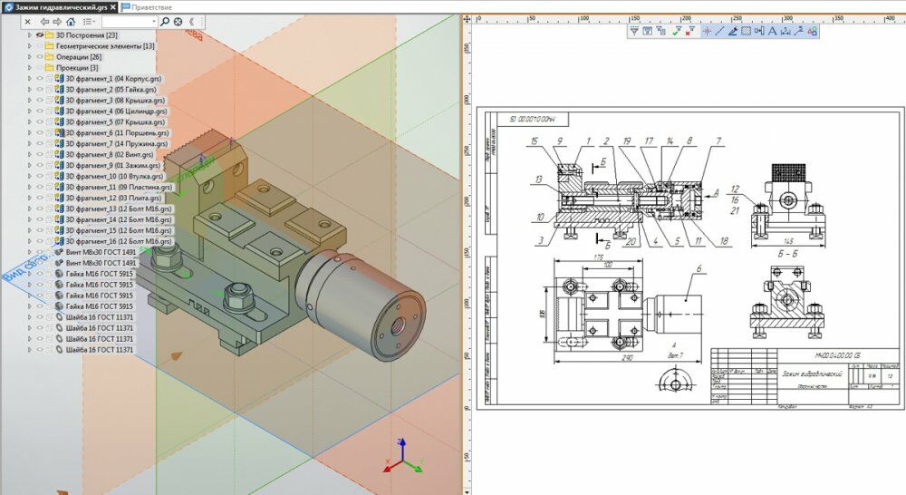 Зажим гидравлический МЧ00.04.00.00 спецификация T-FLEX CAD