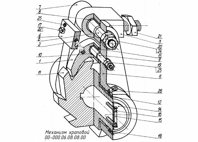 Механизм храповый 00-000.06.08.08.00 ЧЕРТЕЖ