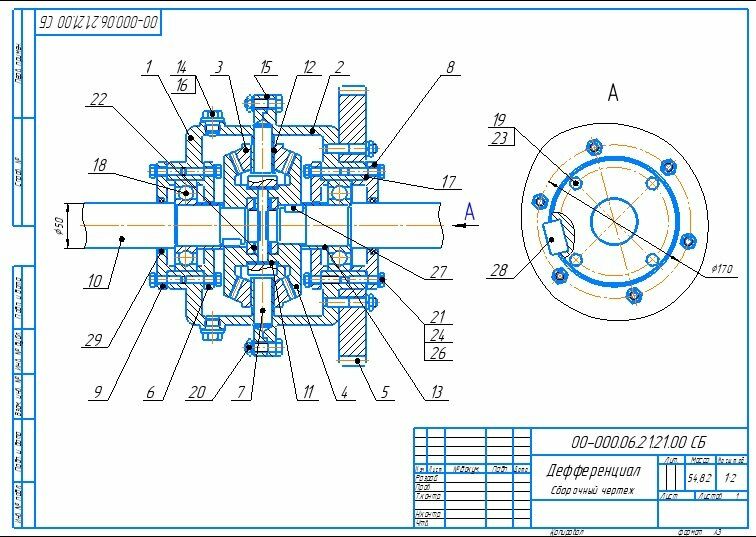 Дефференциал 00-000.06.21.21.00 сборочный чертеж
