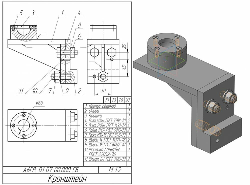 Кронштейн А6ГР.01.07.00.000 сбКронштейн А6ГР.01.07.00.000 спецификация Кронштейн А6ГР.01.07.00.000 3д СБОРКА