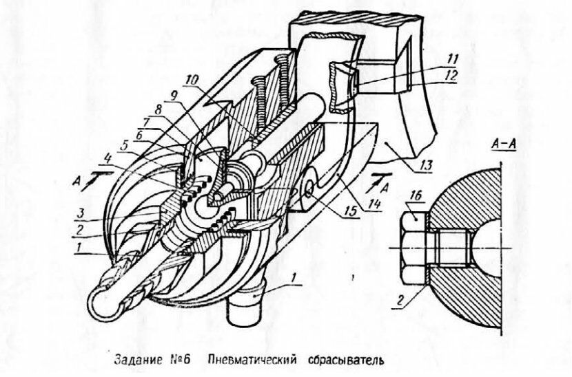 Пневматический сбрасыватель 6-00 сборочный чертеж