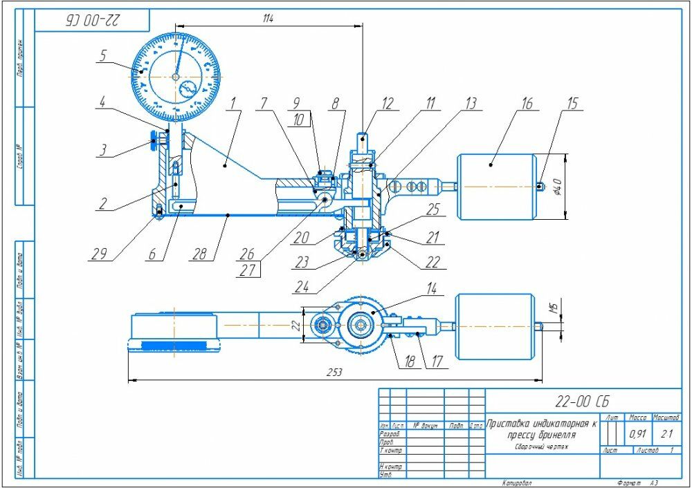 Приставка индикаторная к прессу бринелля 22-00 чертежи