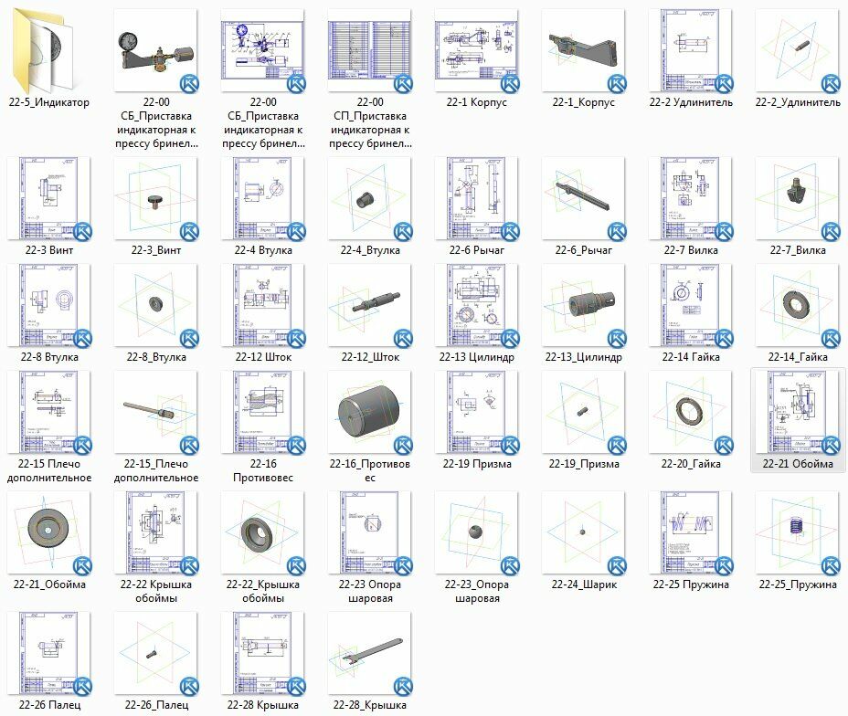 Все чертежи и 3d модели (все на скриншотах показано и присутствует в архиве) выполнены в КОМПАС 3D.Также открывать и просматривать, печатать чертежи и 3D-модели, выполненные в КОМПАСЕ можно просмоторщиком КОМПАС-3D Viewer.