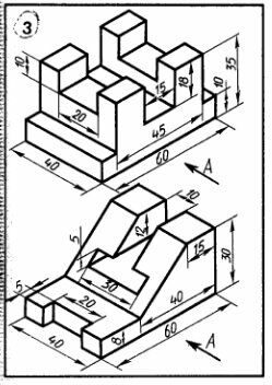 Построить три вида модели. Главный вид взять по стрелке А. Проставить размеры.