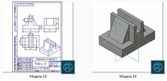 Для студентов по предмету Инженерная графикаПо двум видам модели построить третий вид и изометриюПо двум видам модели построить третий вид и изометрию