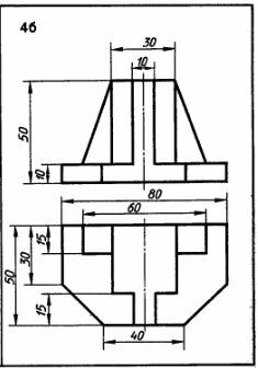 По двум видам модели построить третий вид и изометрию. Проставить размеры.