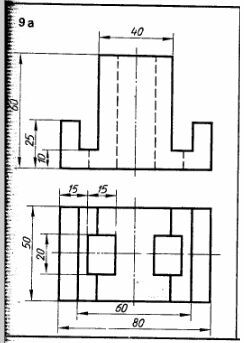 Задача 33: По двум видам модели построить третий вид и изометрию вариант 9а