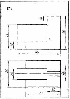 Задача 33: По двум видам модели построить третий вид и изометрию вариант 17а