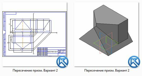 Пересечение призм. Вариант 2 ЧЕРТЕЖ