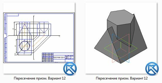 Пересечение призм. Вариант 12 ЧЕРТЕЖ