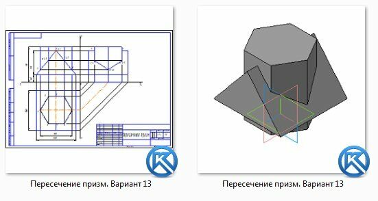 Пересечение призм. Вариант 13 ЧЕРТЕЖ