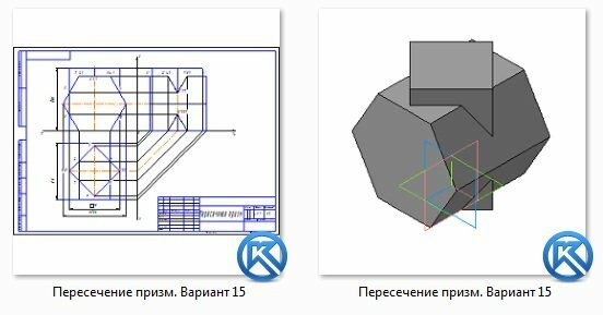 Пересечение призм. Вариант 15 ЧЕРТЕЖ