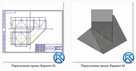 Пересечение призм. Вариант 16 ЧЕРТЕЖ