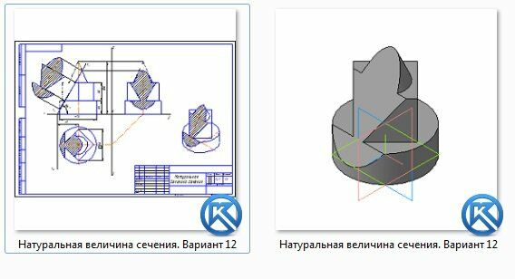 Натуральная величина сечения. Вариант 12 ЧЕРТЕЖ