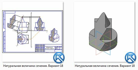 Натуральная величина сечения. Вариант 18 ЧЕРТЕЖ