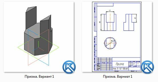 Упражнение 25 По двум проекциям призмы с вырезом построить третью проекцию. Проставить размеры.