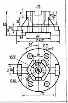 По двум видам модели построить третий. Выполнить необходимые разрезы. Поставить размеры.