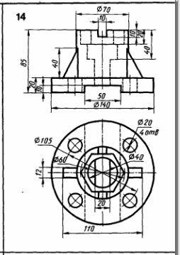 По двум видам модели построить третий. Вариант 14 ЧЕРТЕЖ