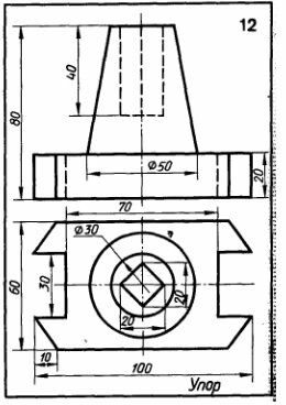 Графическая работа 10. По двум видам построить третий. Выполнить разрезы. Проставить размеры. Изобразить деталь в изометрии с вырезом четверти.