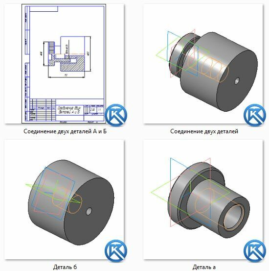 Выполнить соединение двух деталей.