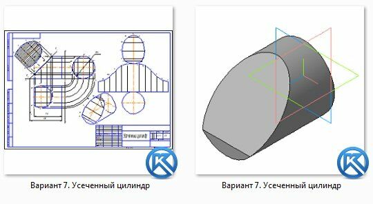 Усеченный цилиндр. Вариант 7 ЧЕРТЕЖ