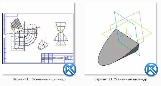 Усеченный цилиндр. Вариант 13 ЧЕРТЕЖ