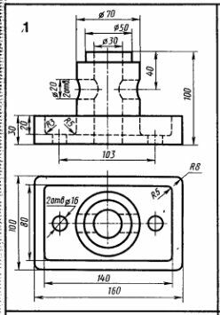 Контрольная работа 1Б Перечертить два вида модели. Построить третий вид. Выполнить необходимые разрезы. Проставить размеры.