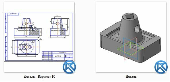 Перечертить два вида модели. Вариант 10 ЧЕРТЕЖ