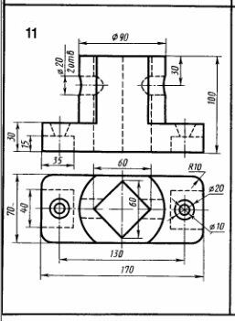 Перечертить два вида модели. Вариант 11 ЧЕРТЕЖ