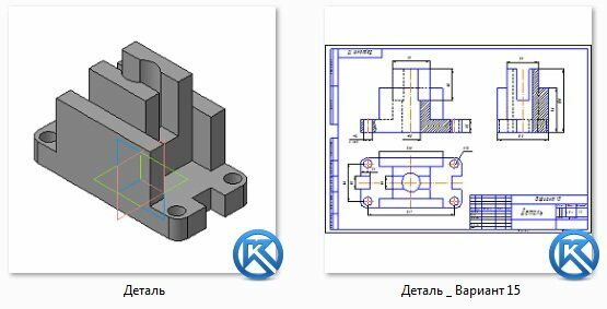 Перечертить два вида модели. Вариант 15 ЧЕРТЕЖ