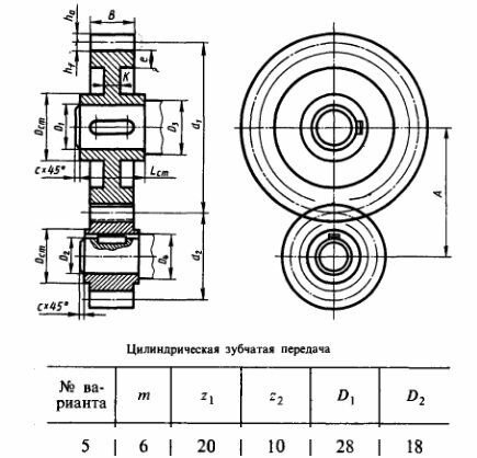 Выполнить чертеж цилиндрической зубчатой передачи.