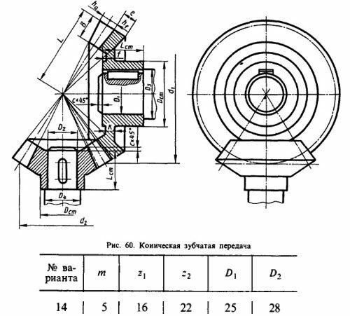Коническая зубчатая передача. Вариант 14 ЧЕРТЕЖ