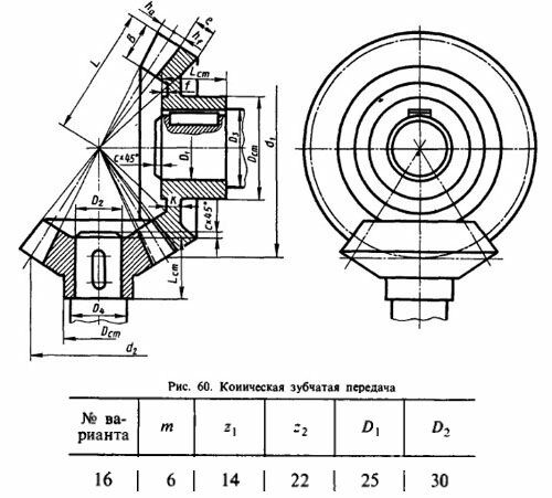 Коническая зубчатая передача. Вариант 16 ЧЕРТЕЖ
