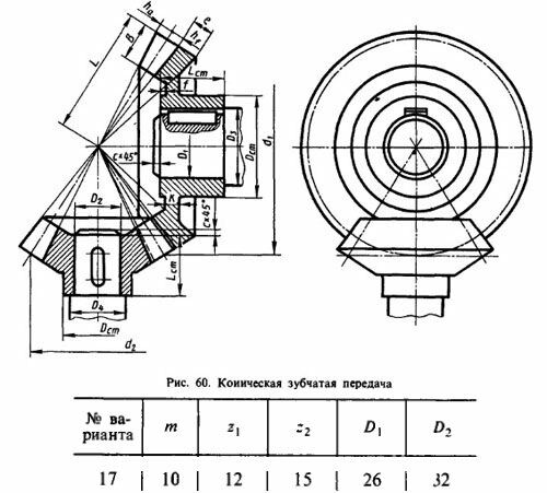 Коническая зубчатая передача. Вариант 17 ЧЕРТЕЖ