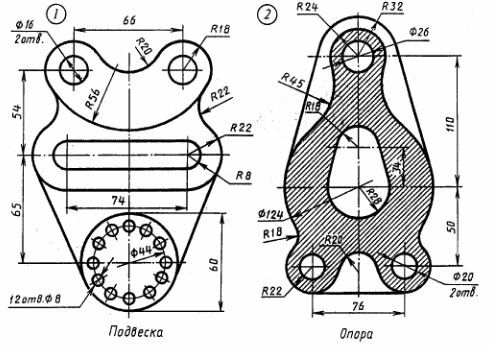 Задание 6 Вычертить изображения контуров деталей и нанести размеры.