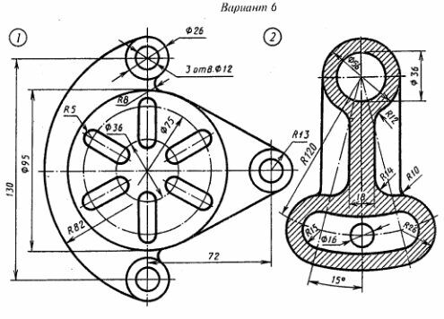 Задание 6 Вычертить изображения контуров деталей и нанести размеры.