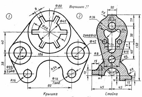 Задание 6 Вычертить изображения контуров деталей и нанести размеры.