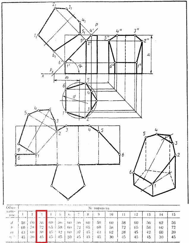 Усеченная призма. Вариант 3 ЧЕРТЕЖ