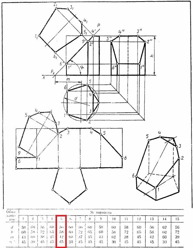 Усеченная призма. Вариант 5 ЧЕРТЕЖ
