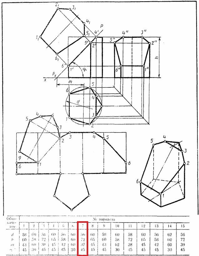 Усеченная призма. Вариант 7 ЧЕРТЕЖ