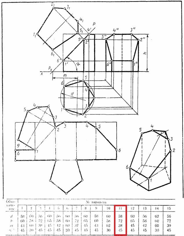 Усеченная призма. Вариант 11 ЧЕРТЕЖ