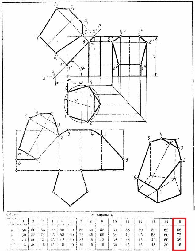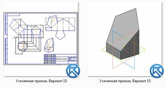 Усеченная призма. Вариант 15 ЧЕРТЕЖ
