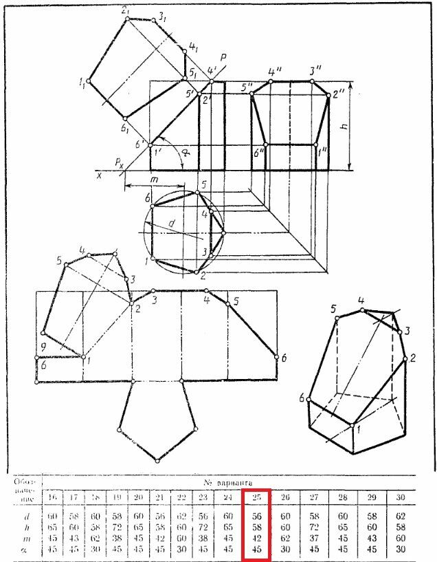 Усеченная призма. Вариант 25 ЧЕРТЕЖ