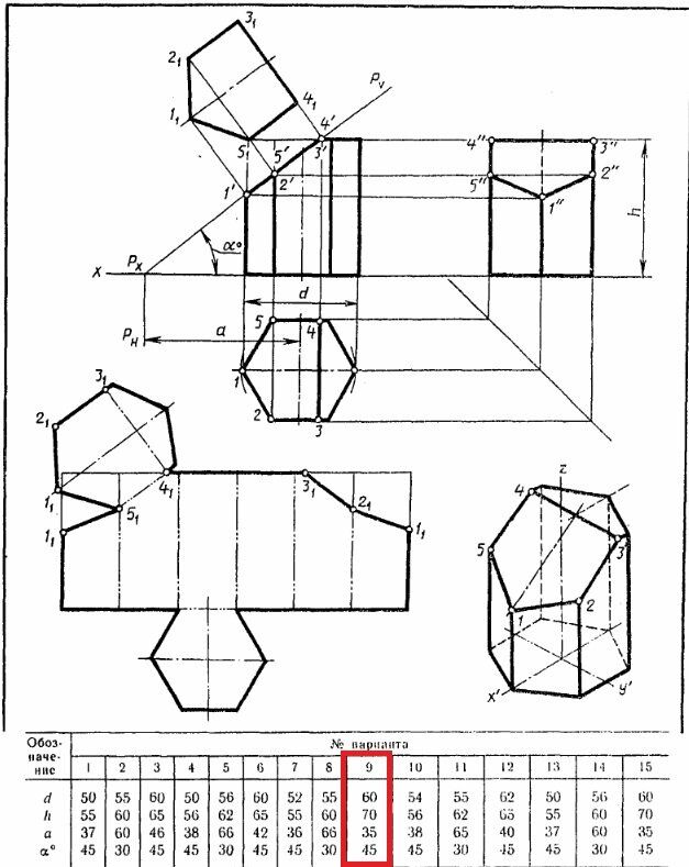 Усеченная призма. Вариант 9 ЧЕРТЕЖ