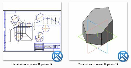 Усеченная призма. Вариант 14 ЧЕРТЕЖ