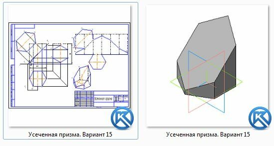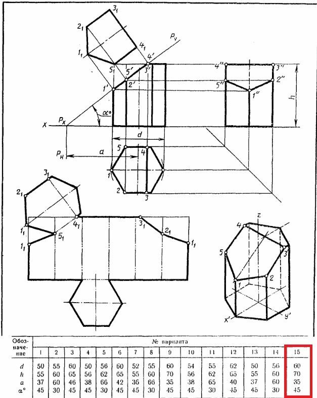 Усеченная призма. Вариант 15 ЧЕРТЕЖ