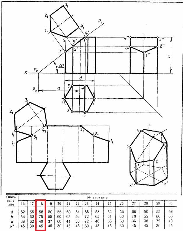 Усеченная призма. Вариант 18 ЧЕРТЕЖ