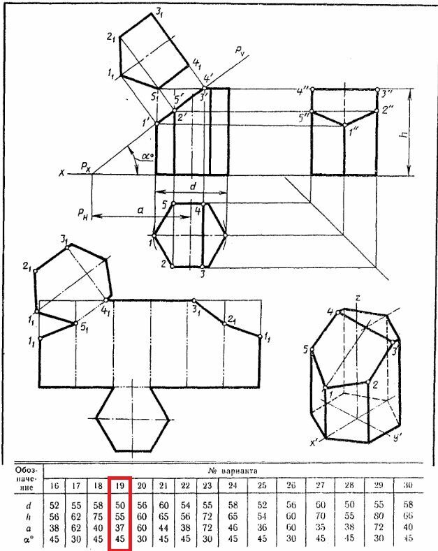 Усеченная призма. Вариант 19 ЧЕРТЕЖ