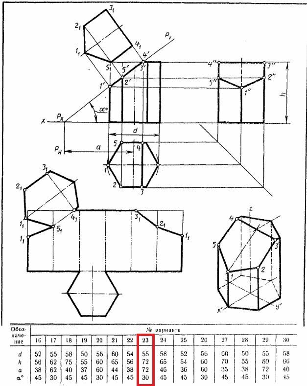 Усеченная призма. Вариант 23 ЧЕРТЕЖ