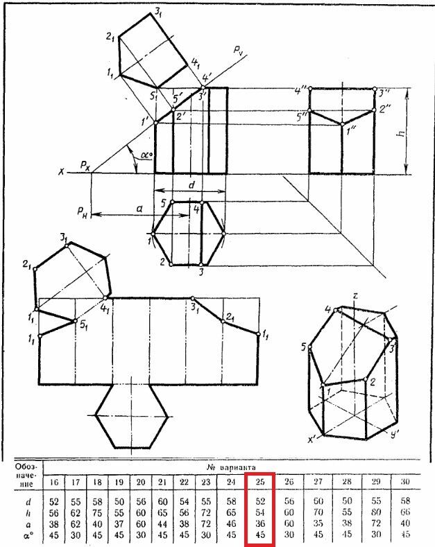 Усеченная призма. Вариант 25 ЧЕРТЕЖ